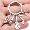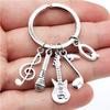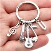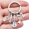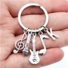 26 Letters Music Keychain Music Note Guitar Pendant Key Chain Microphone Keyring Creative Jewelry Gifts