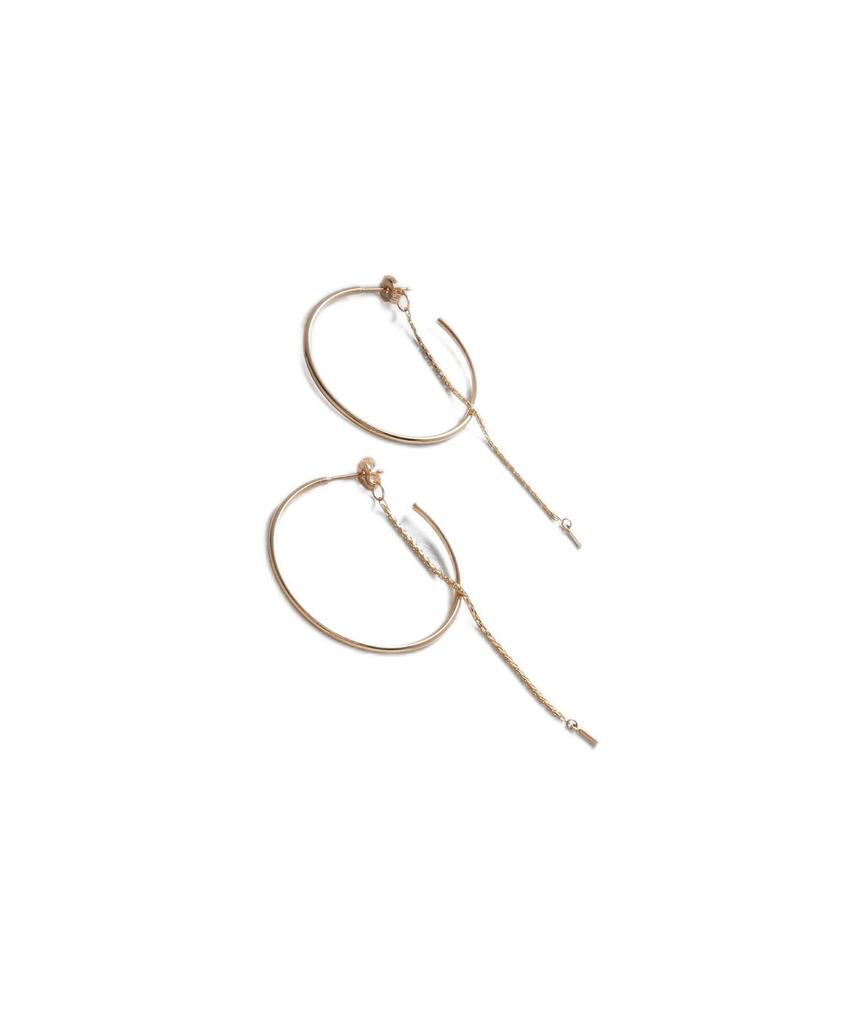 Earrings K10 Hollow Hoop Hang Chain Stud Earrings 40576551 Yellow Gold 00 [Kokoshnick] Women's (100)