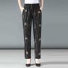 Summer Middle-aged and Elderly Women's Cropped Pants High Waist Elastic Oversized Pants Middle-aged Women's Floral Pants