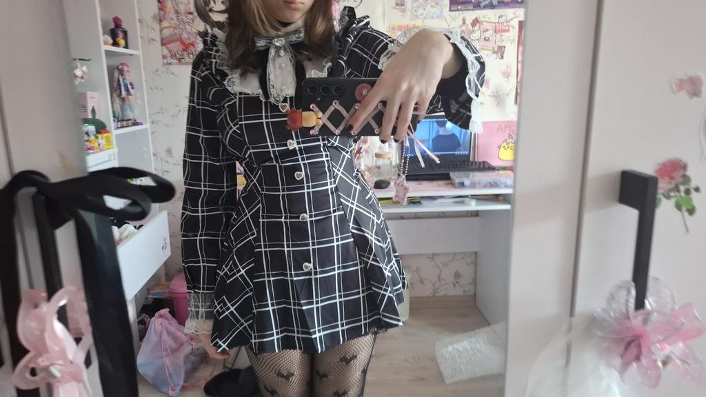 Harajuku Sweet Bow Black Plaid Dresses All-match Slim Fit Kawaii Lolita Dress for Women Autumn New Long Sleeve — buy online with free worldwide shipping!