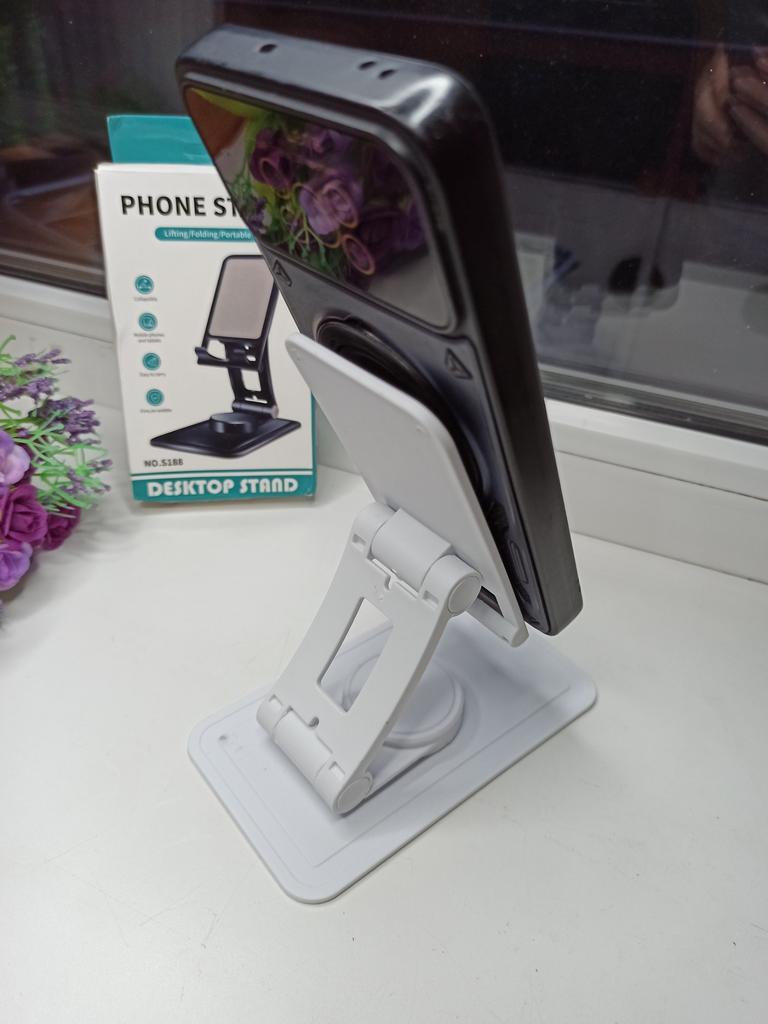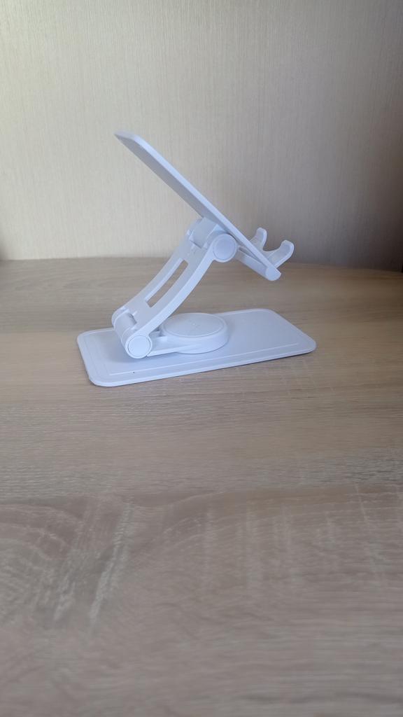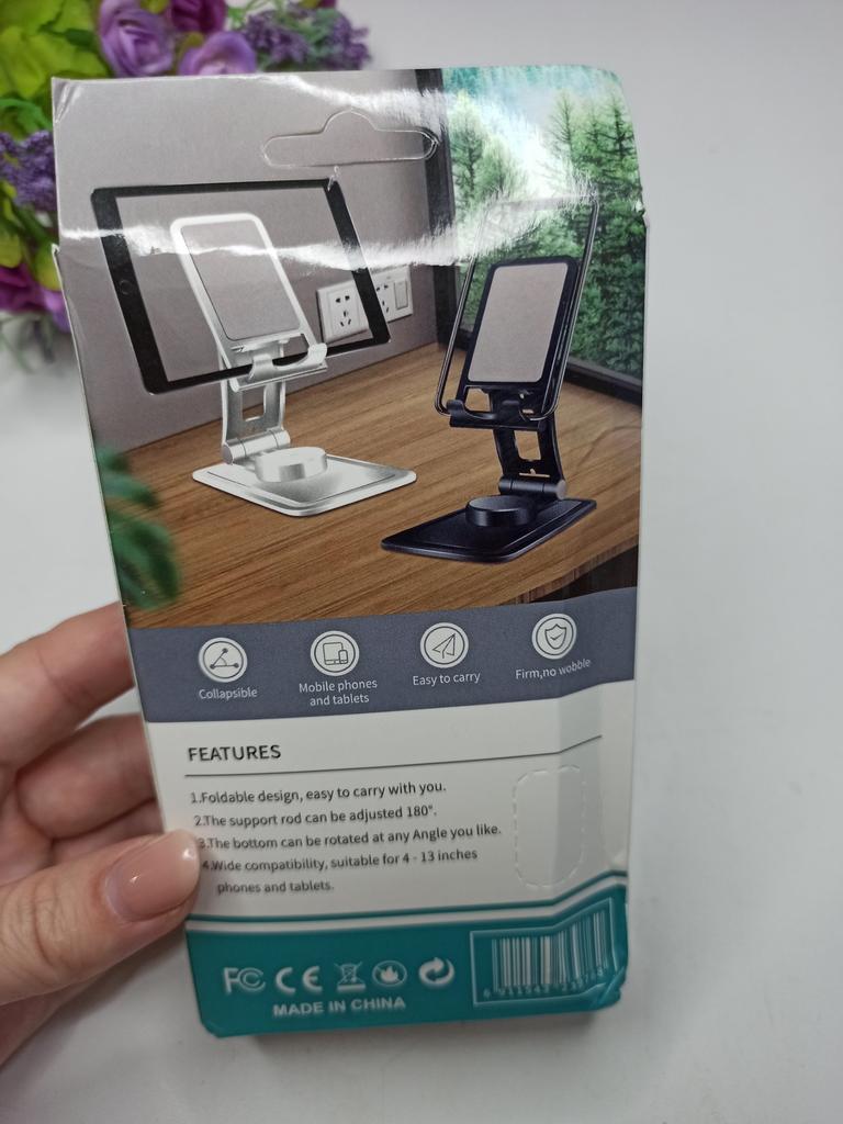 The desktop stand is a stylish accessory that will add comfort to using your phone or tablet. It is perfect for work or simply for viewing content on the internet. Compatible with mobile phones and tablets. The folding design of the holder allows you to store it in a desk or carry it with you in a bag. The adjustable height of the stand will allow you to position the gadget most comfortably for the user's height. And with the ability to adjust the tilt angle by 45 degrees, you can choose the most convenient position for the device. Anti-slip rubberized pads securely hold the stand and the gadget in place. The body material is made of aluminum alloy and ABS plastic. The holder is very lightweight — with dimensions of 11x7x2 cm, the weight is only 25 g, but at the same time it holds perfectly on the work surface. Definitely recommend.👍
