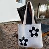 Knitting Woolen Flower Decor Tote Bag Women Crochet Fashion Open Shopper Top-handle Bag Female Daily Large Capacity Handbag