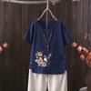 2025 Summer Women's Bird Print V-neck Cotton Hemp T-shirt - Trendy & Comfortable — buy online with free worldwide shipping!