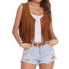Women's Fashion Suede Buttonless Mid-Length Vest Solid Colour Vest Jacket