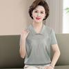 Mom's Summer Short Sleeved Stylish Ice Silk T-shirt Middle-aged and Elderly Lapel Top Slimming Knit T-shirt — buy online with free worldwide shipping!