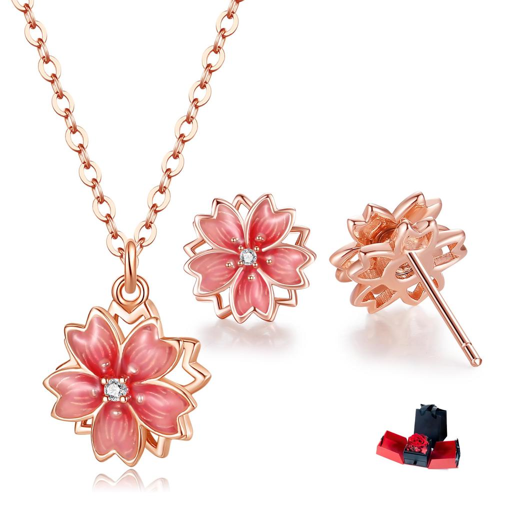 [Product Details] Pendant size: 1.1*1.1cm, necklace chain: 40cm+5cm (length adjustable). Earrings: Size: 1cm length Material: 925 silver, enamel, synthetic cubic zirconia Accessories: Gift box with rose petals, gift bag, silver polishing cloth