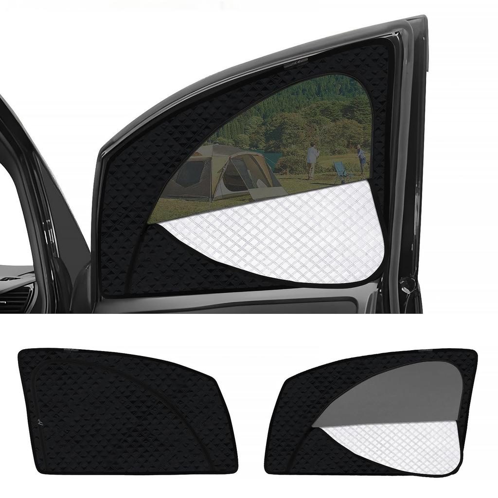 [2 in 1 integrated type & ventilation & UV protection] 2024 new type of blackout & ventilation 2 in 1 mesh curtain is now available! The integrated design allows you to open the zipper and use it as a sunshade or screen door, making it convenient. Even if you park in the hot sun for a long time, a car sunshade will reduce the temperature rise inside your car and improve your comfort by blocking the strong sunlight when you take a break in your car. The mesh structure provides high breathability and prevents mosquitoes and flies from entering, making it useful for outdoor use such as camping.