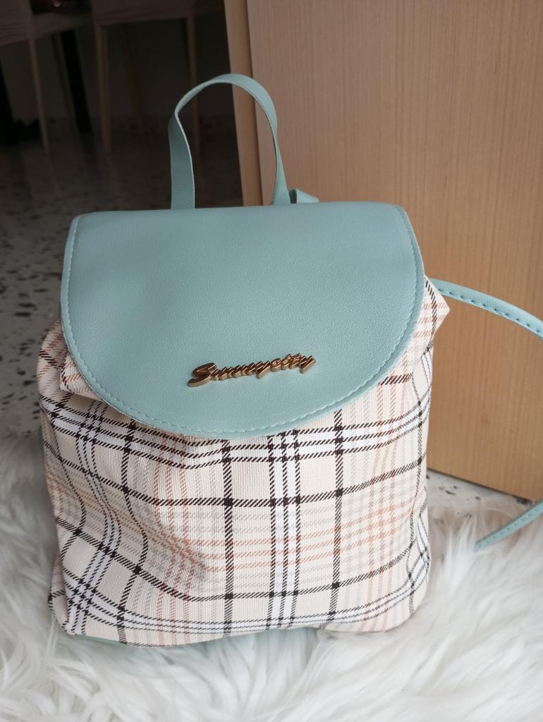 Small backpack👍👍❗️ This is a small backpack but really cute and above all functional. The backpack has color-on-color stitching and a metal decoration. The bag does not have but closes with a color-on-color lace. I ordered the bag in blue but it also exists in other colors. The bag is small and easy to handle, perfect for holding a cell phone, even a large wallet, house keys and that's it. The color of the bag is exactly as in the photo.👍👍👍👌👌👌❗️ The stitching is perfect. The backpack has straps that are replaceable. The bag does not have an unpleasant chemical smell. TOP!!! I am satisfied with the quality of the bag and the value for money!👍👍👍✅️ The product is ideal for everyday use I think the bag will be perfect for summer and holidays. 👍 ✅️❗️🔝🔝🔝 Delivery time: 🚚🚛✈️✈️✈️15 days in Italy. Summary✅️: Backpack with replaceable shoulder strap Thank you so much for this!🙏🌞 Thank you joom and the seller 😘😘🙏 5 stars 🌟 🌟 🌟 🌟 🌟
