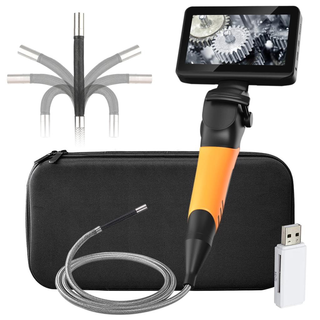 2-Way movable tip: Lens can be rotated 180 degrees in both directions, viewing angle 120 degrees, depth of field 8mm-∞, 6 LED lights, 3 levels of brightness adjustment, blind spots disappear and you can see in all directions.