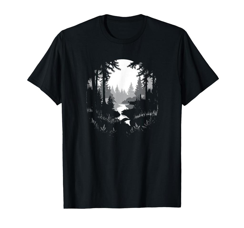 Night Nature Wildlife Trees Outdoor has simple, text-free graphics that nature lovers will love wearing. It shows a mysterious forest of pine trees enlightened by the moon and a flowing stream. A perfect natural gift for birthdays, Christmas, or your next trip.