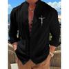 Cotton Blouse Beach Style Top Man Long Sleeved Stand Up Collar Letters Printed Retro Slim Fit Men's Casual Shirts