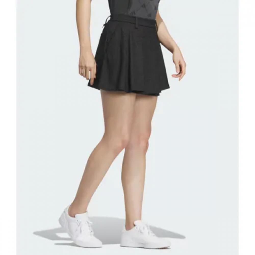 The Adidas Golf 2023 FW Women's Textured Golf Skirt HZ6099 features elegant pleat detailing. This skirt offers comfortable wear and brings style and confidence on every golf course. The inner shorts provide coverage and confidence, while the pleated detail enhances the sophisticated silhouette. The materials used are 60% recycled polyester, 20% viscose rayon, and 20% wool.