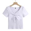Women's Summer V-neck Drawstring Design Short-sleeved T-shirt Solid Color High Waist Small Shirt