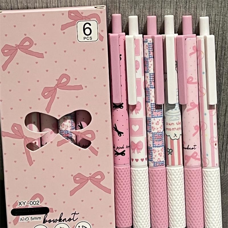 6Pcs/box Sweet American Pink Color Gel Pens for Kids Cream Bow Cake Dessert Stationery Gel Pen 0.5mm Black Ink Pen for Writing