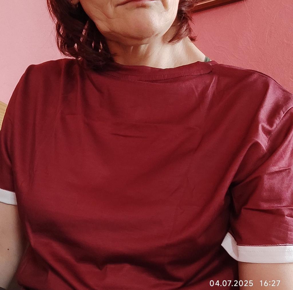 The color is terrible, doesn't match the photo, but the neckline binding is sewn unevenly, somewhere - wider, somewhere - narrower