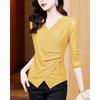New Autumn Clothing Slim and Versatile Cross V-neck Solid Color Long-sleeved Mesh Base Shirt for Women's Inner T-shirt