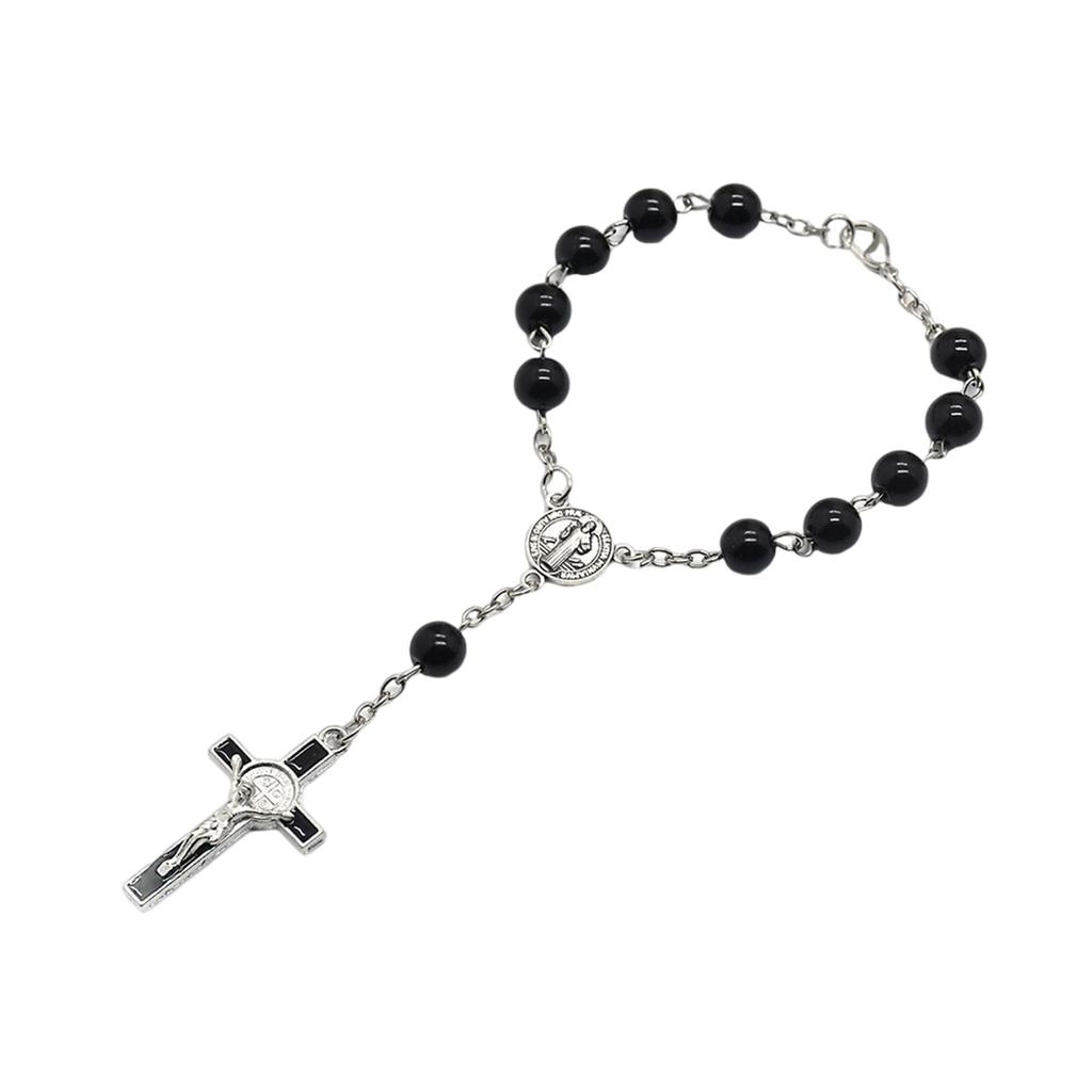 Fashion Simple Dangle Cross Bracelet Black Beads Jesus Pendant Bracelet for Women Anniversary Couple Jewelry Presents — buy online with free worldwide shipping!