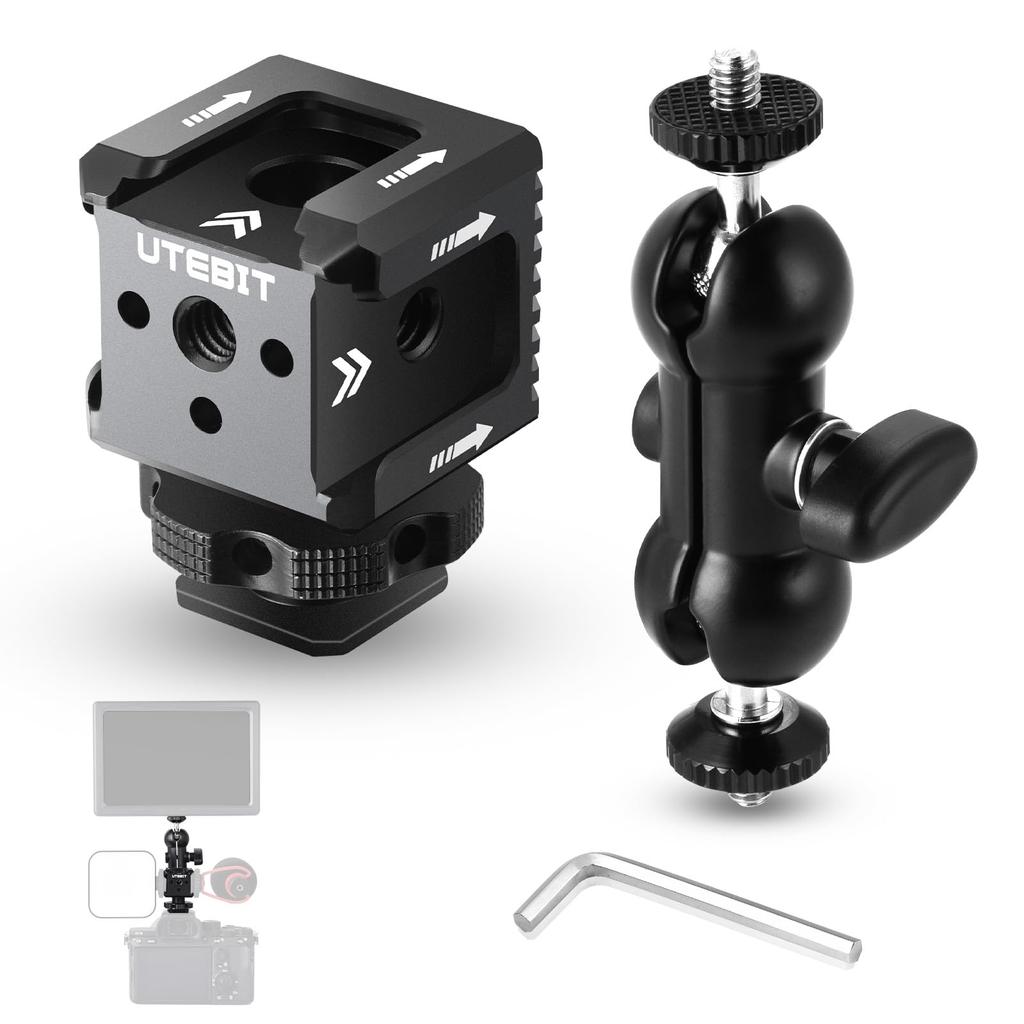 UTEBIT Hot Shoe Adapter 3 Cold Shoe Mount + Magic Arm Set 1/4 Strobe Shoe Mount Aluminum Magic Arm Load Capacity 2kg Compatible with Light/LED Monitor/Microphone/Audio Recorder etc.
