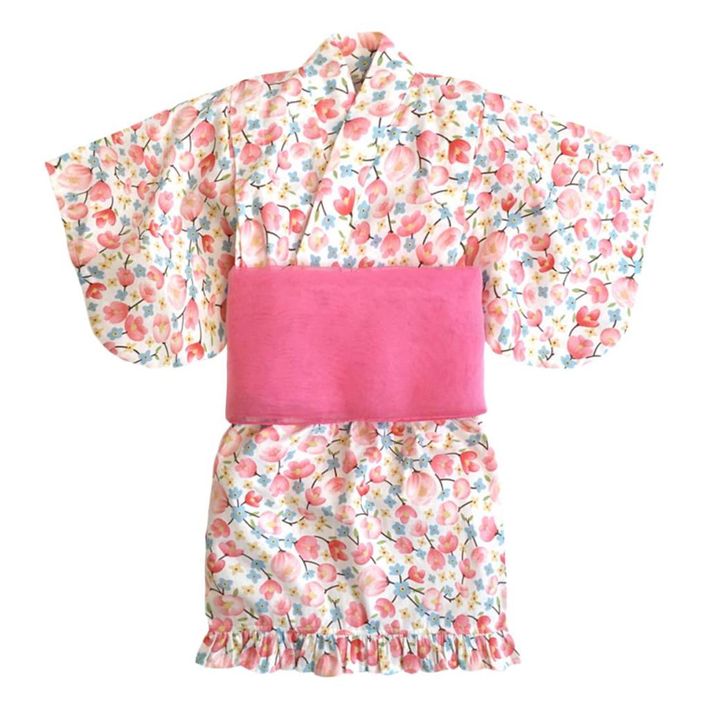 This cute yukata top and bottom set is perfect for summer! Fully elastic waist makes it easy to put on and take off. 3-piece set: Yukata top, skirt and Heiko obi. Made of soft fabric, cotton that feels very comfortable to the touch. Made of thin fabric with good breathability, great for summer.