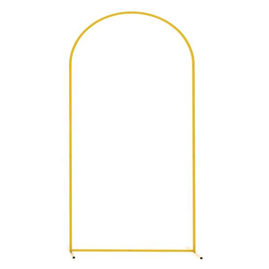 Enhance your event with this versatile arched frame. Whether indoors or outdoors, this golden backdrop rack is perfect for various occasions. Constructed with sturdy materials, it offers stability and can hold up to 20 pounds. Assembly is a breeze, taking just 5 minutes for one person.