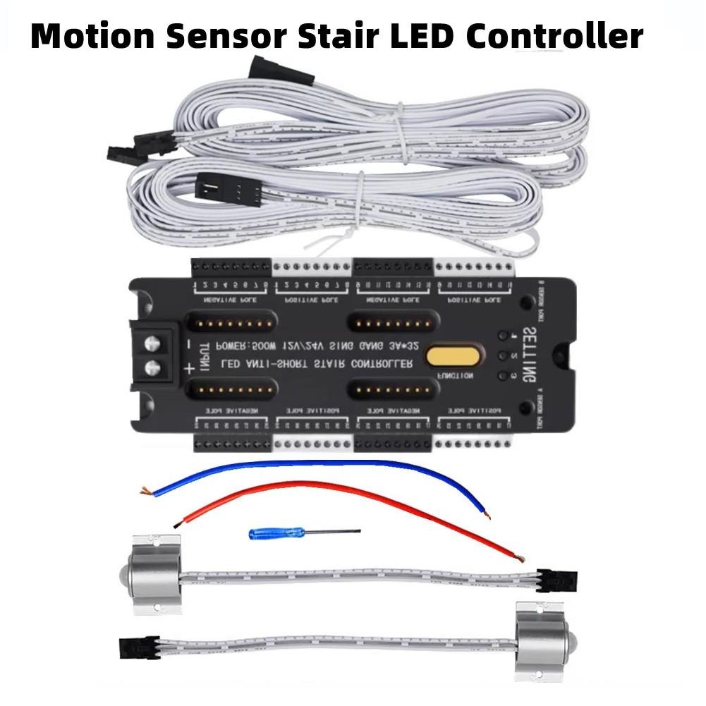 *Press and hold for 5 seconds to set the number of stair lights. The blue light indicates that the serial number light is on. Click the button until all lights are on. Up to 32 stair lights can be controlled. Press and hold again to confirm.