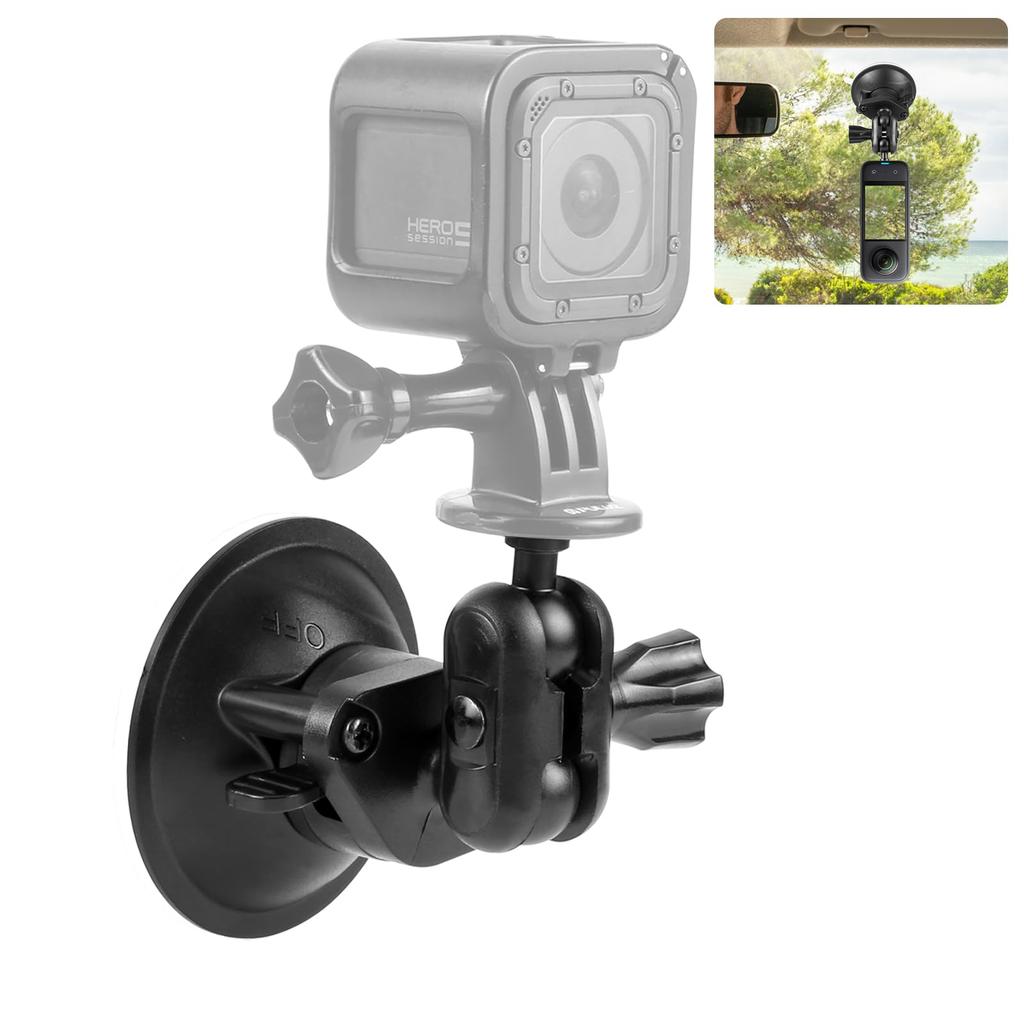 Product Description This car camera suction cup uses a 1/4 inch male connector that is compatible with a wide range of standard connector sizes for heads and tripods in the photography industry. Compatible with sports cameras such as GoPro, DJI, Insta360, AKASO and other devices that comply with this interface. Durable and compact design, the suction cup is made from shatterproof ABS, aluminum alloy, and PVC materials, making it lightweight and durable, making it easy to carry and use. The unique design includes a clamp and turn-lock knob for stability and vibration dampening, ensuring your device doesn't move around while driving. The suction cup base is 7cm in diameter, with plus and minus knobs for locking or unlocking, and can be easily installed on dashboards, windshields and other smooth surfaces, ensuring secure fixation and easy removal. This expands the possibility of stable shooting while traveling. What's more, this suction cup is equipped with a 17mm ball head, 360 degree rotation, and a rotating base with adjustable angle, which will make your travel footage richer because your footage will not be from a single angle. child