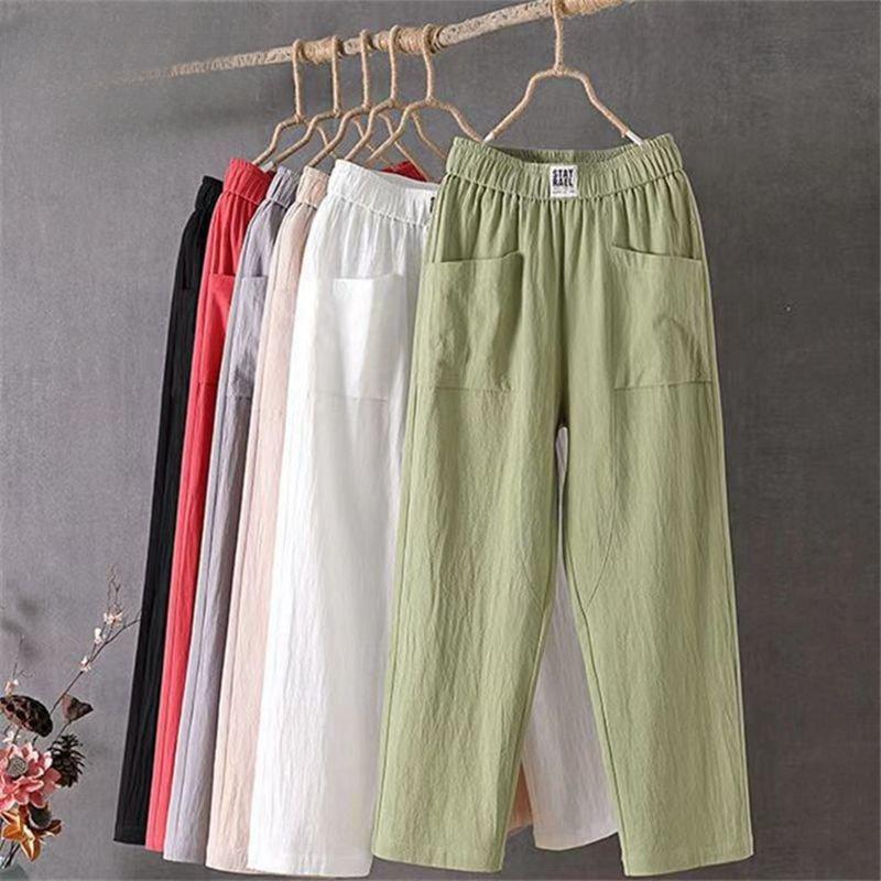 Summer Women's Pants Cotton Linen Casual Pants Loose Straight Pants Nine-point Haren Pants