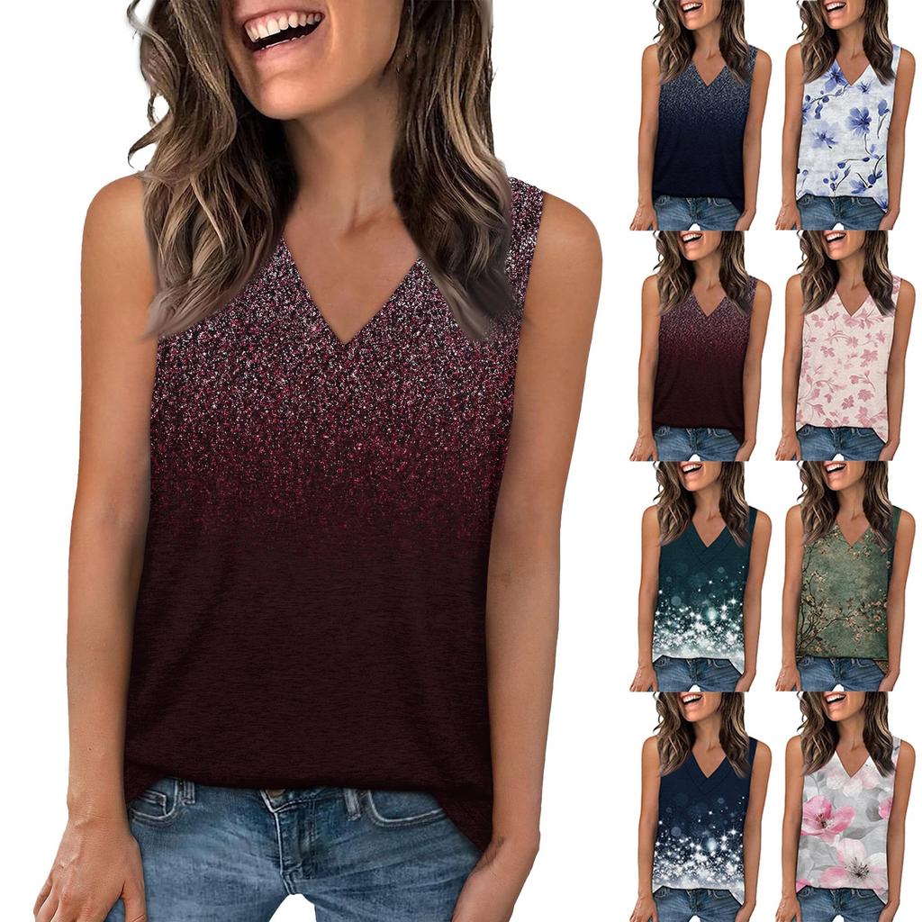 Tank Top Women Casual Printed Soft Summer V Neck Sleeveless Tops — buy online with free worldwide shipping!