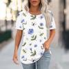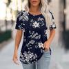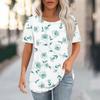T Shirts For Women Pleated Round Neck Dressy Casual Blouses Printing Short Sleeve Summer Tops Loose Fit