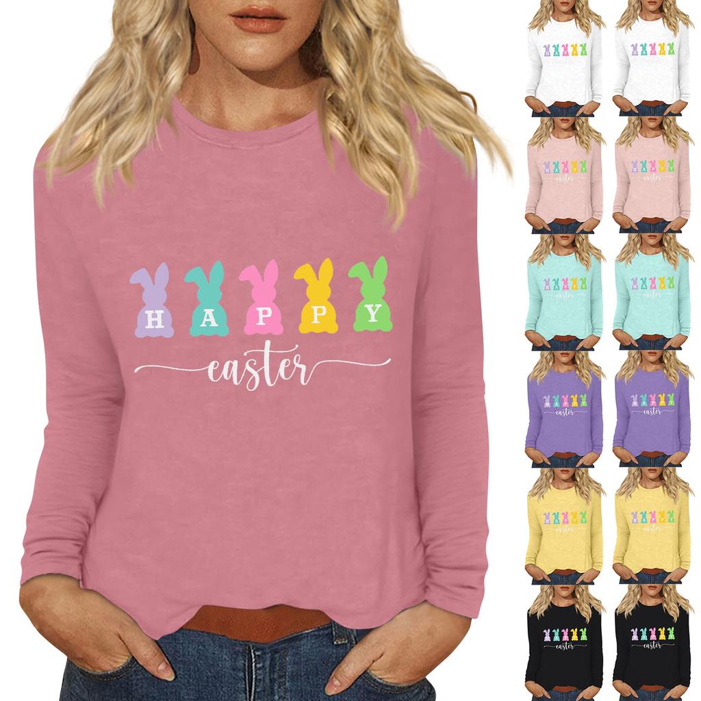 Long Sleeve Shirts For Women Easter Carnival Print Graphic Tees Blouses Casual Basic Tops Pullover — buy online with free worldwide shipping!