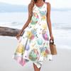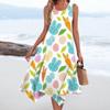 Women's Casual Fashion Round Neck Sleeveless Print Irregular Hem Midi Dress