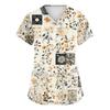 Women's Fashion V-neck Short Sleeve Workwear With Pockets Printed Tops