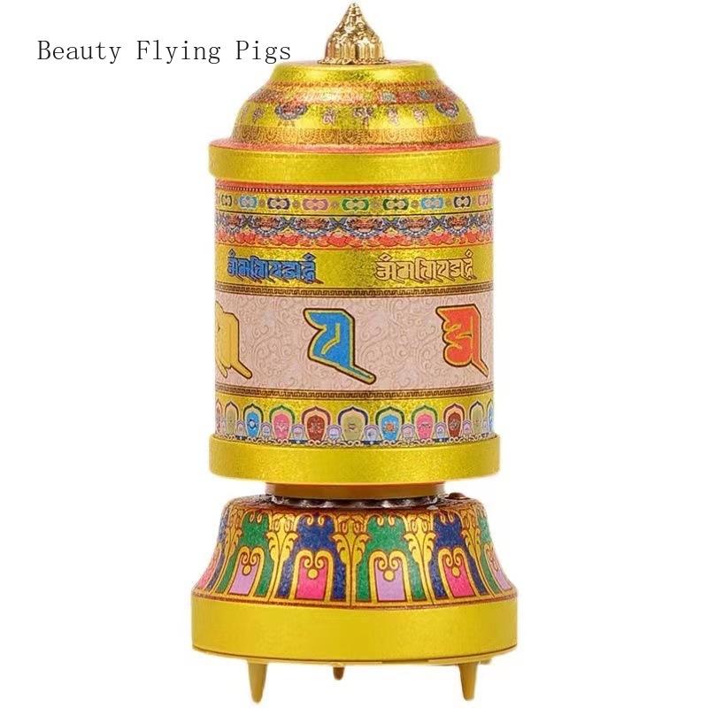 1PCS Xizang Electric Prayer Wheel Household Prayer Red Gold Belt Voice Prayer Wheel Home Decoration Accessories