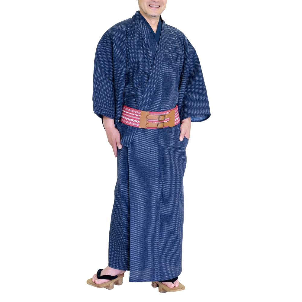 Single Dot Sashiko [SWINGPLUS] Kimono, Clothes, Yukata, Pattern, Weave, 100% Cotton, Men's (M, Navy)