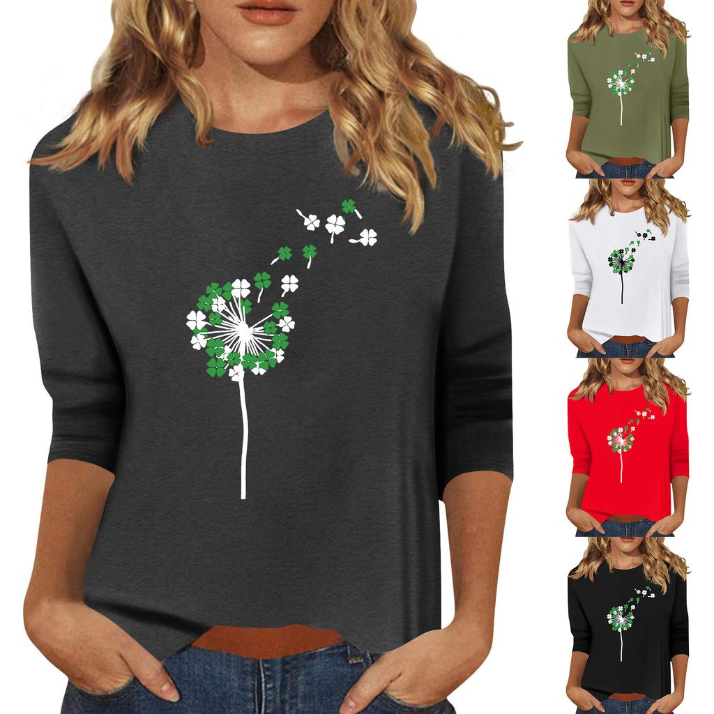 Women's Fashion Casual Printed Seven Sleeve Round Neck Top