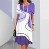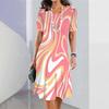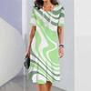 Summer Woman Dresses Women's Round Neck Short Sleeves Clothing Irregularly Streak Print Dress Clothing Loose Pullover Streetwear