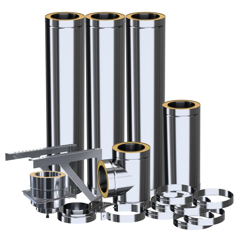 The materials used are resistant to high temperatures, which guarantees no deformation or discoloration while using heating devices.The system consists of two steel flue pipes (combustion core and outer jacket). The exhaust gas is ejected through the flue pipe and the air intake between the wood stove pipe and the jacket. We also offer pipe kits.
