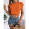 Spring Summer Women's Casual Solid Colour Twist Short Sleeve Knit Holiday Short Cord Top — buy online with free worldwide shipping!