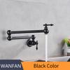 Black Wall Faucet Double Joint Spout Folding Stretchable Swing Arm Wall Kitchen Faucet Single Hole Two Handle Kitchen Sink