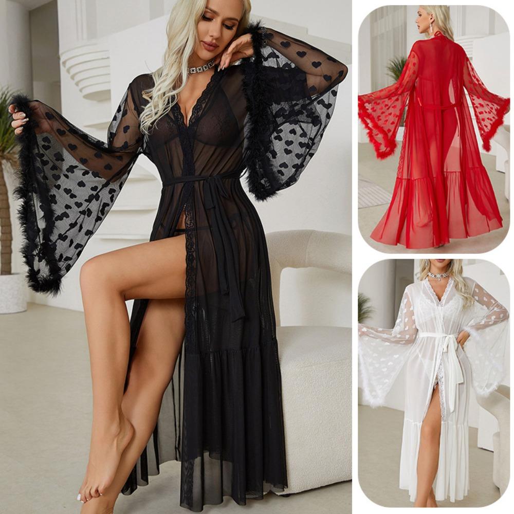 Sexy Mesh Nightgown Seduction Lingerie Cardigan Pajamas Bathrobe Home Gown