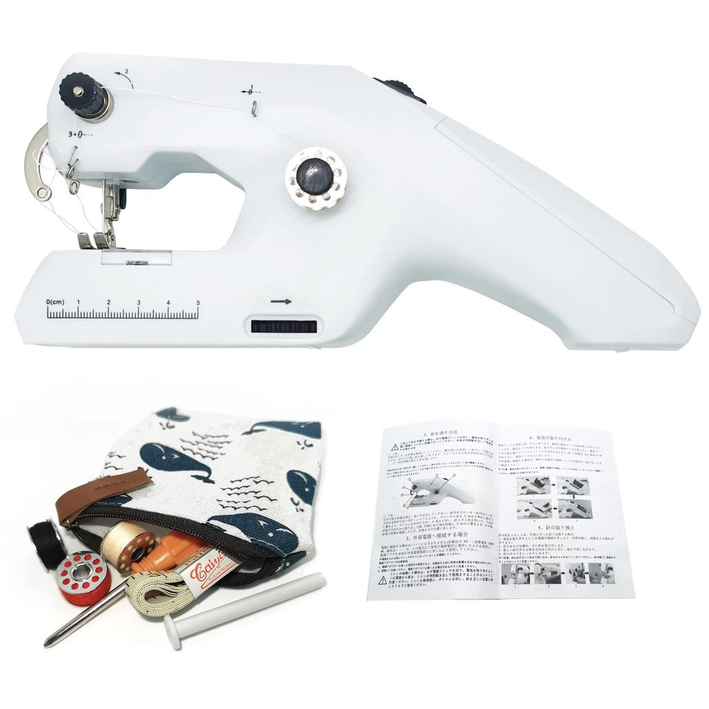 [Necessary parts included] This product uses 4 AA batteries or a DC adapter. (Please note: This product does not include batteries and a DC adapter, so please purchase them separately.) The product kit includes the handy sewing machine, upper thread bobbin, lower thread bobbin (colors are random), empty bobbin, sewing machine thread shaft, spool shaft, threader, screwdriver, spare needle, measuring tape, safety pin, scissors, chalk pen, USB cable (not a power adapter. Please use in conjunction with the USB power connector), and Japanese manual. All the contents of the kit have been prepared with great care, so please use them for your sewing needs.
