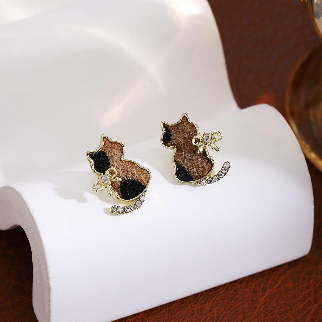 Cute Leopard Cat Stud Earrings for Women, Delicate and Fashionable, Cartoon Style, Elegant and Exquisite, Light Luxury Design — buy online with free worldwide shipping!