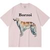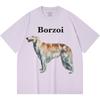230GSM 100% Cotton T-Shirt Borzoi Print Tees Funny Harajuku Style Combed Cotton Tshirt