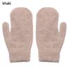Women Girl Solid Color Soft All Fingers Double Layer Rabbit Hair Mittens Winter Gloves