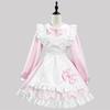 Japanese Maid Cosplay Cute Lolita Party Dress Black White Long Sleeve Classic Apron Maid Role Play Waitress Cross Dressing