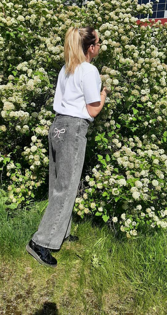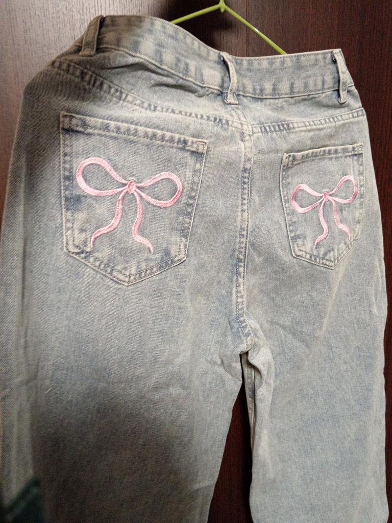 Women Baggy Jeans Bow Embroidered Jean Women High Waist Straight Leg Denim Pants Loose Pant — buy online with free worldwide shipping!