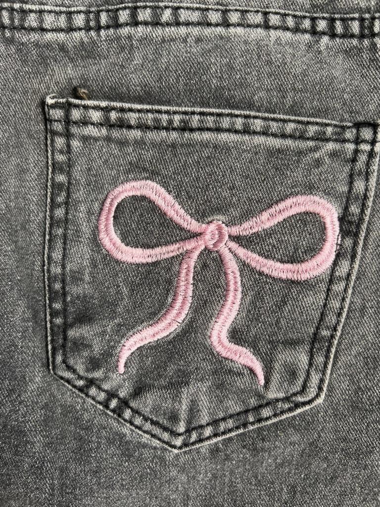 Women Baggy Jeans Bow Embroidered Jean Women High Waist Straight Leg Denim Pants Loose Pant