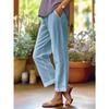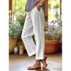 GMXIA Women's Cotton and Linen Loose Solid Color Elastic Waist Pocket Straight Leg Casual Pants — buy online with free worldwide shipping!