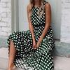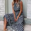 QICED Spring Summer Fashion Versatile Printed Polka Dot O-Neck Long Women's Dresses