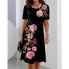 Women's Fashion Summer Spring Flower Pattern Print Short Sleeve O-Neck Casual Dresses